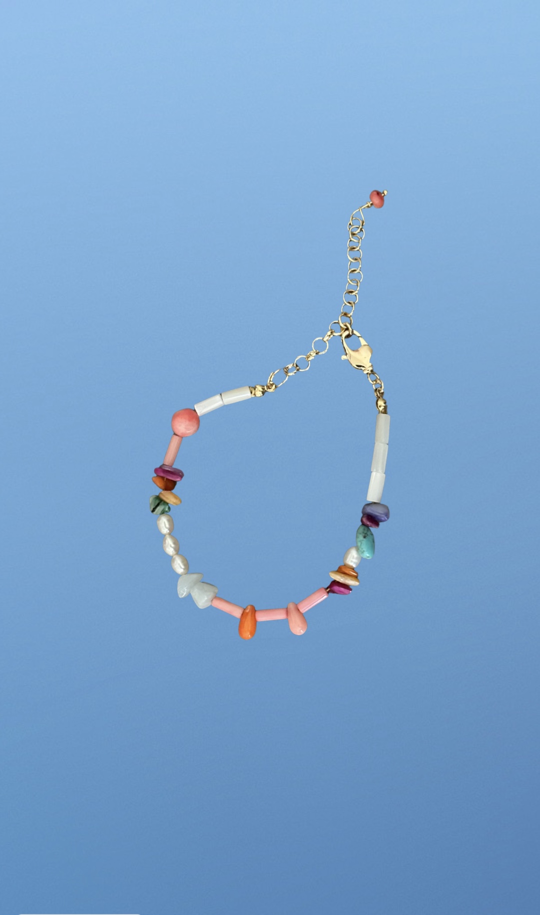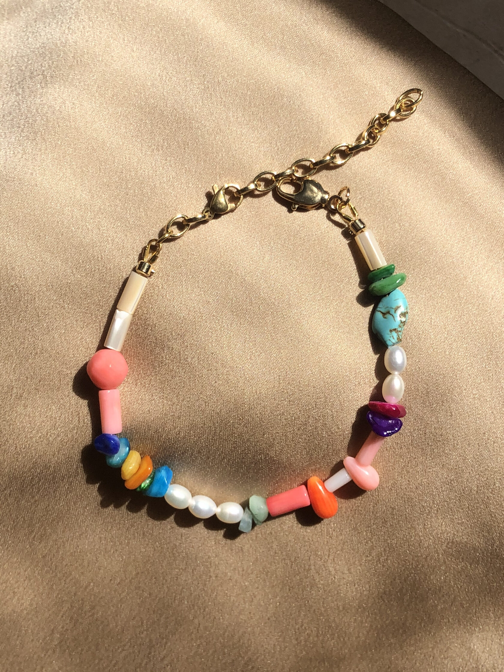 Микс натуральных камней: коралл, жемчуг, перламутр и другие. Гипоаллергенная латунь с позолотой. *Каждое изделие в эксклюзивной сборке