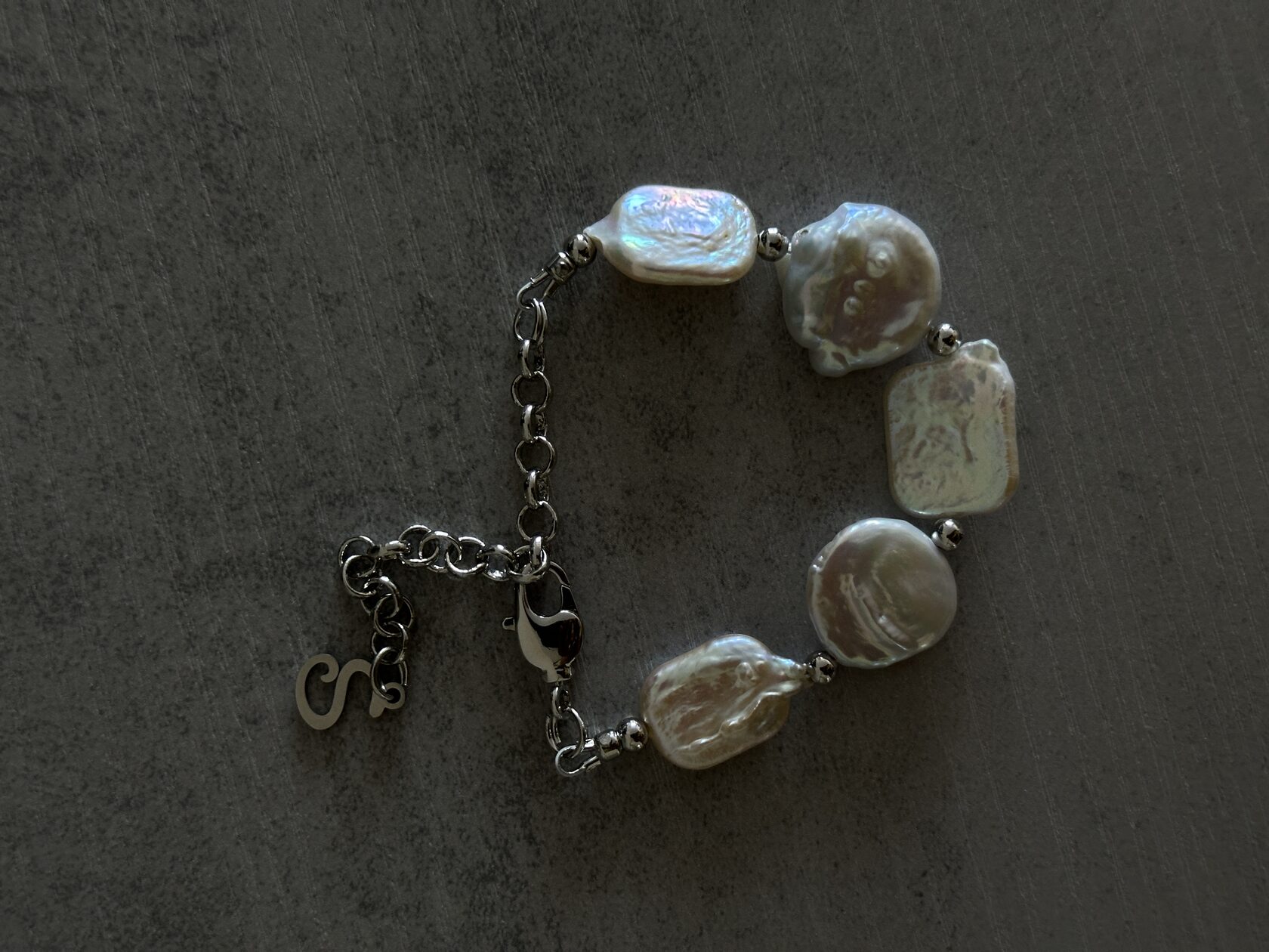 Латунь с радированным покрытием, натуральный белый жемчуг