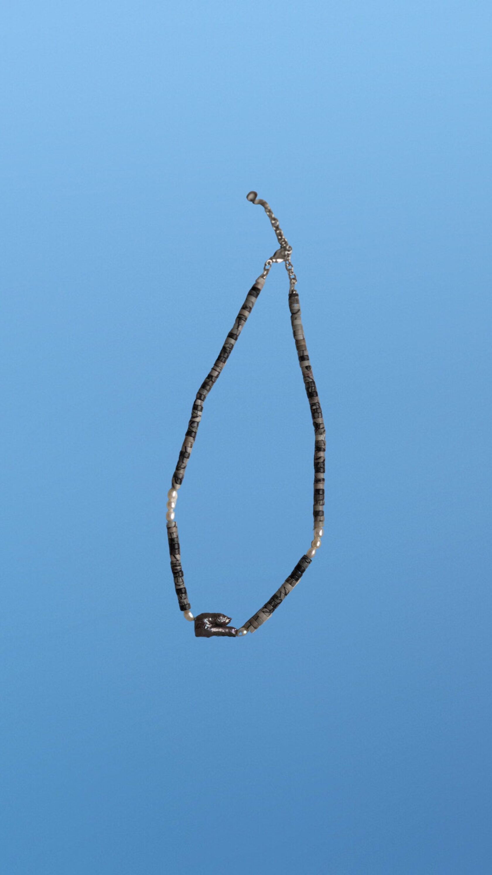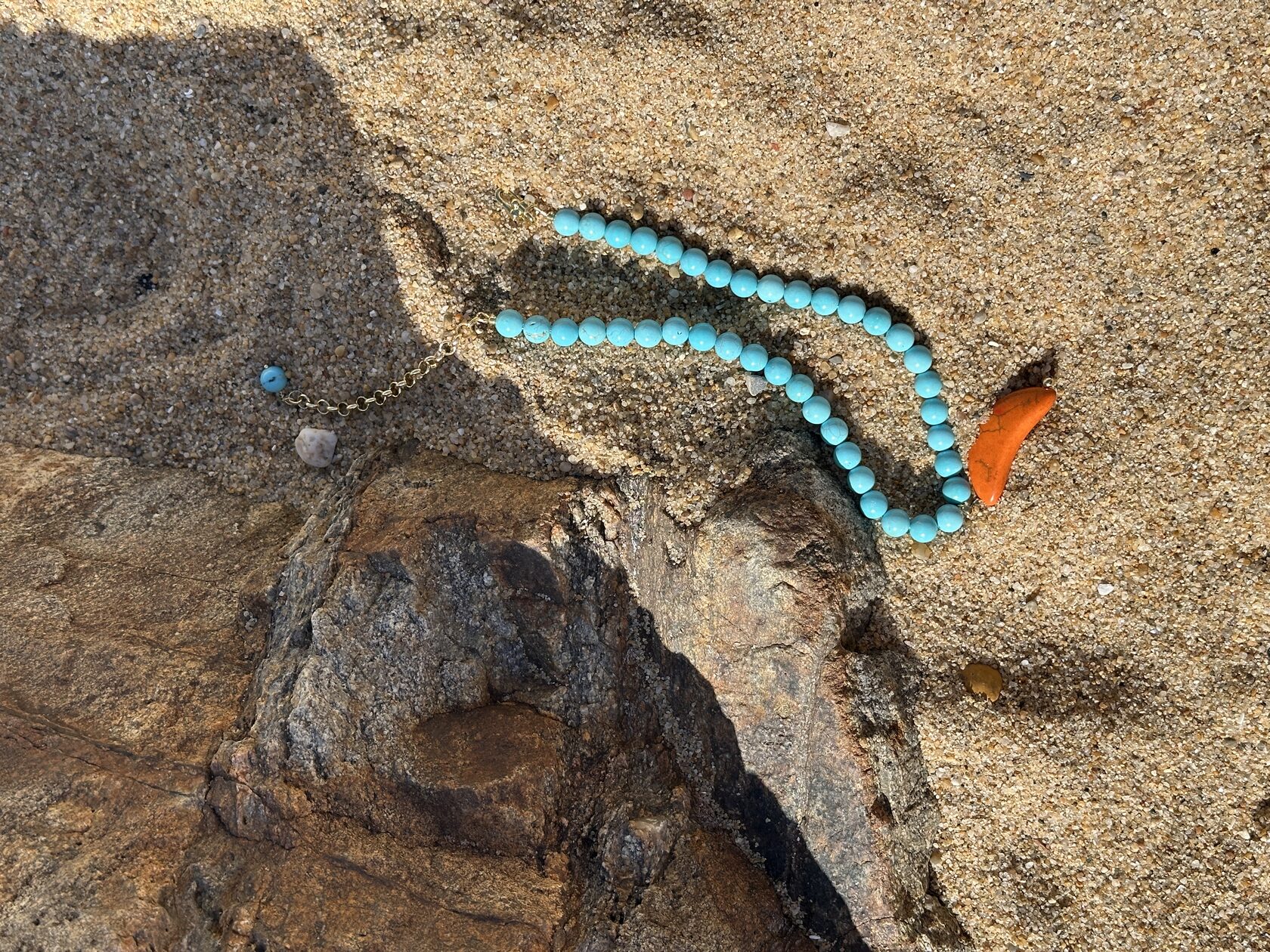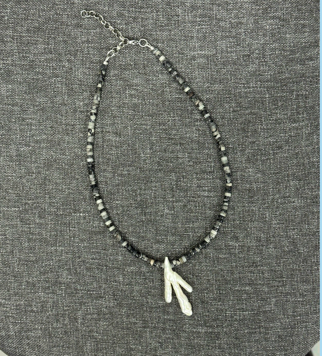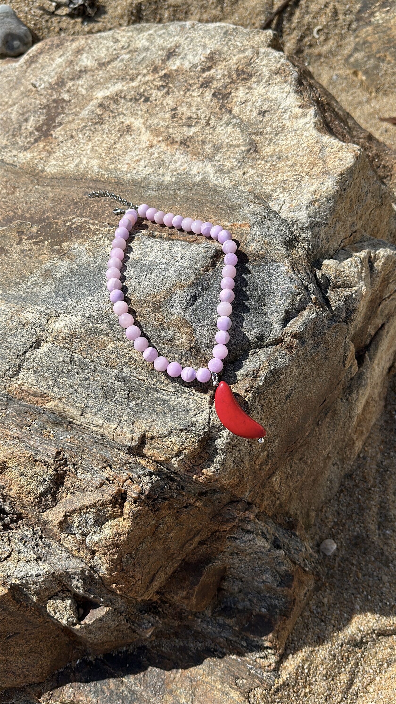 Серпентин, голубой полосатый агат, керамика, ракушки, розовый кварц