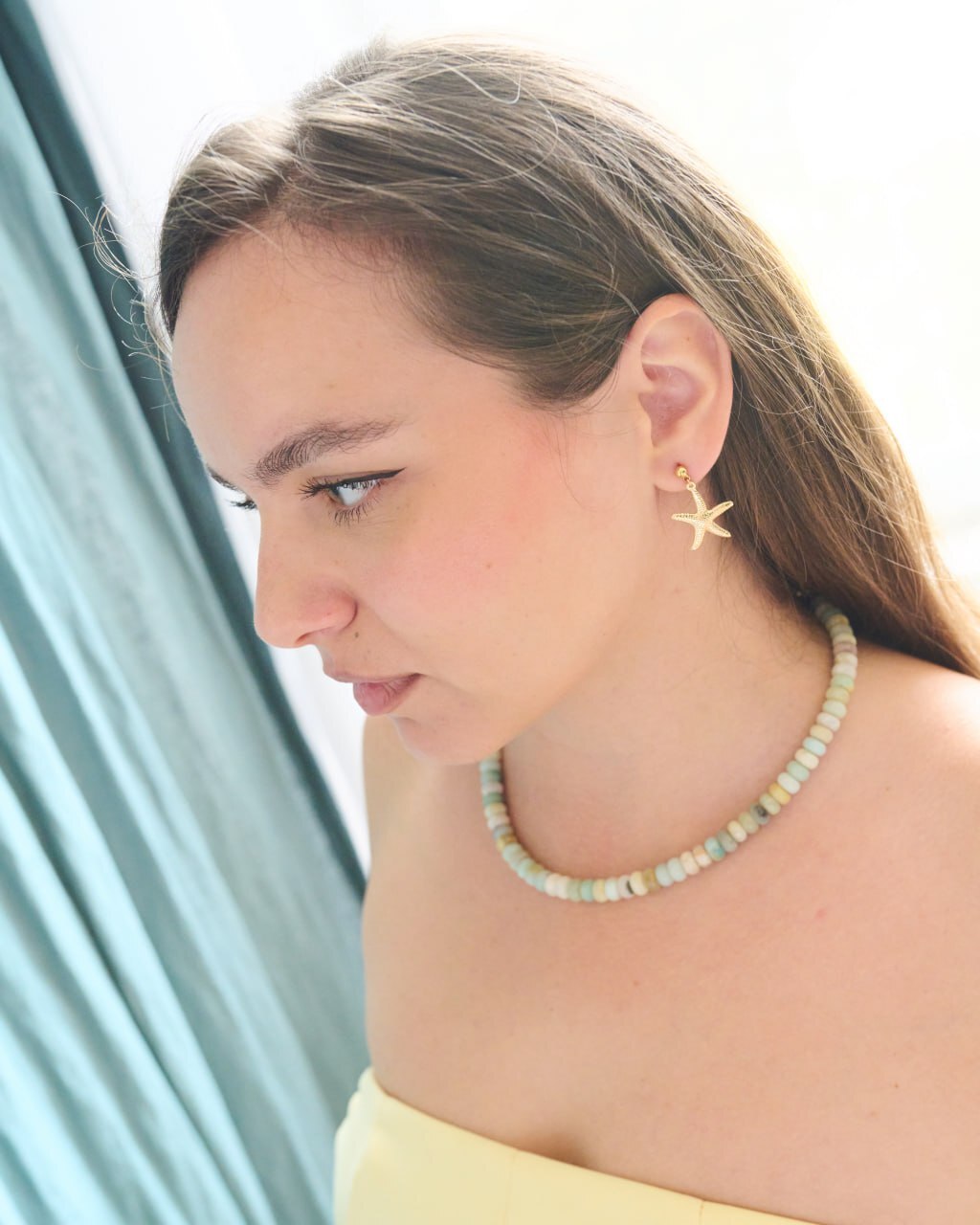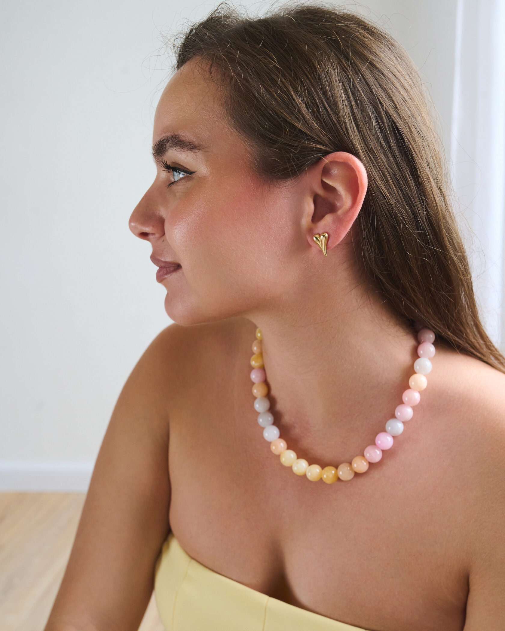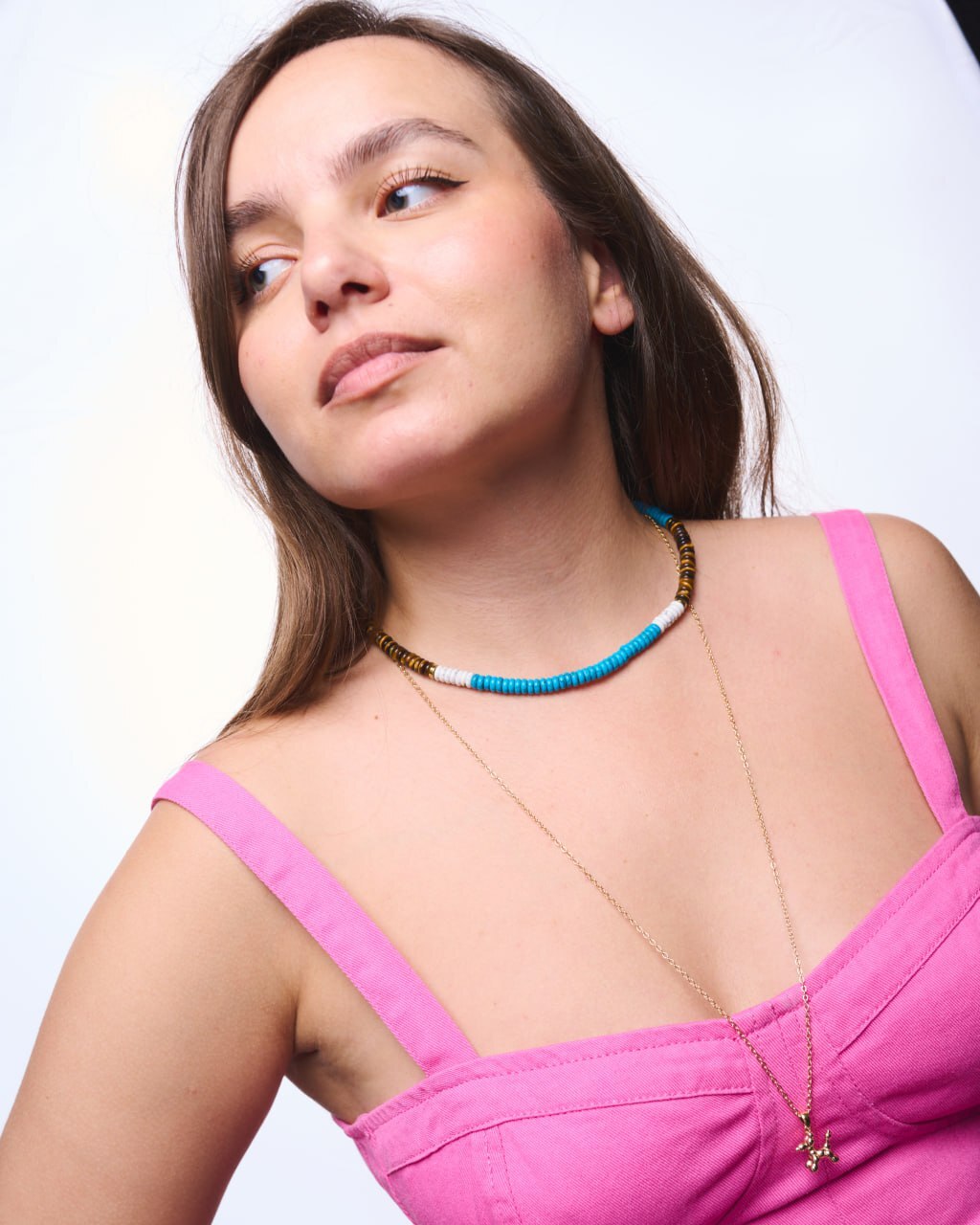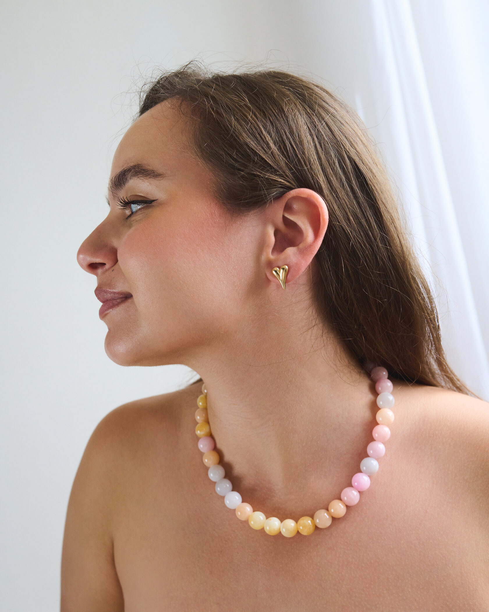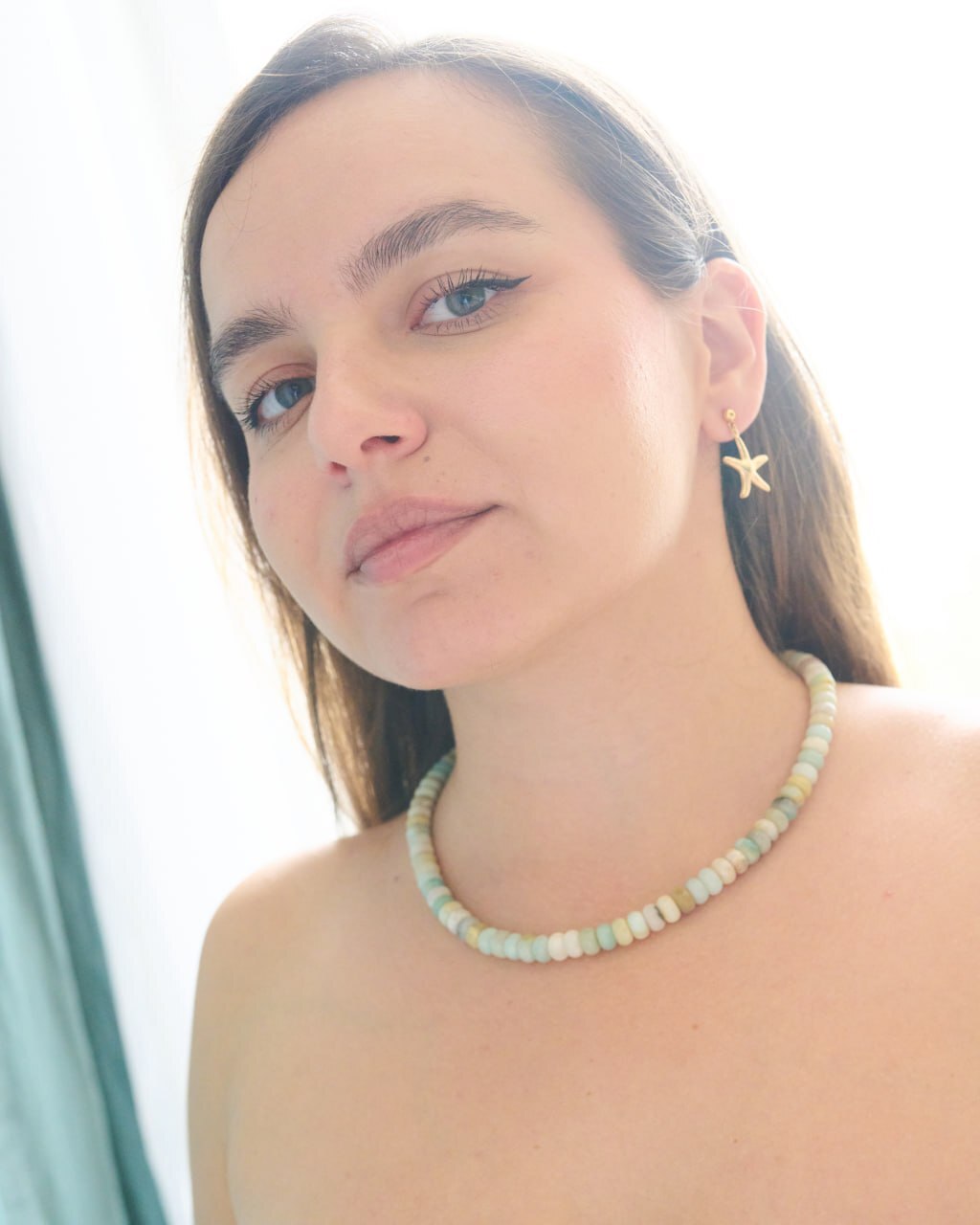Серпентин, голубой полосатый агат, керамика, ракушки, розовый кварц