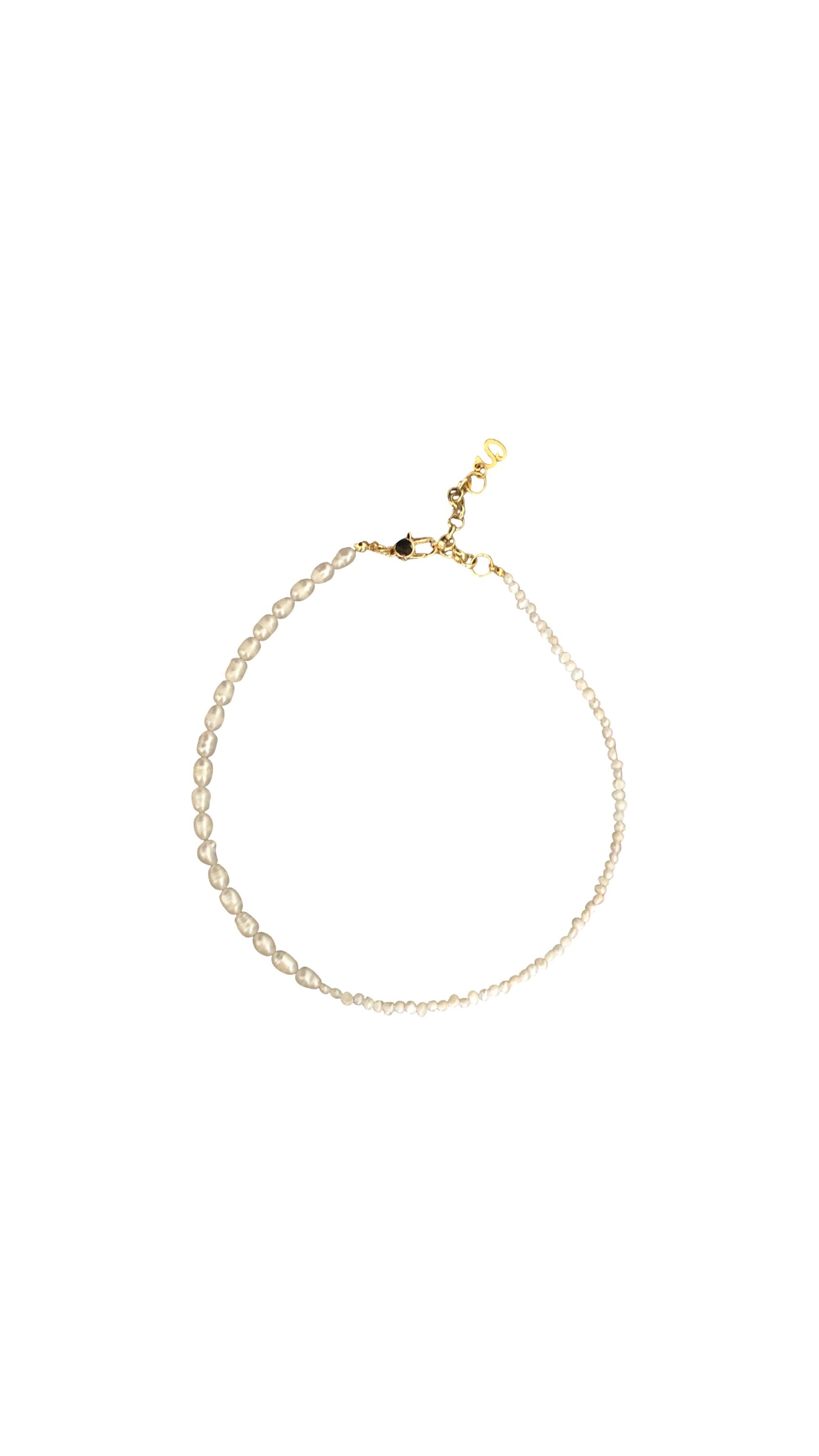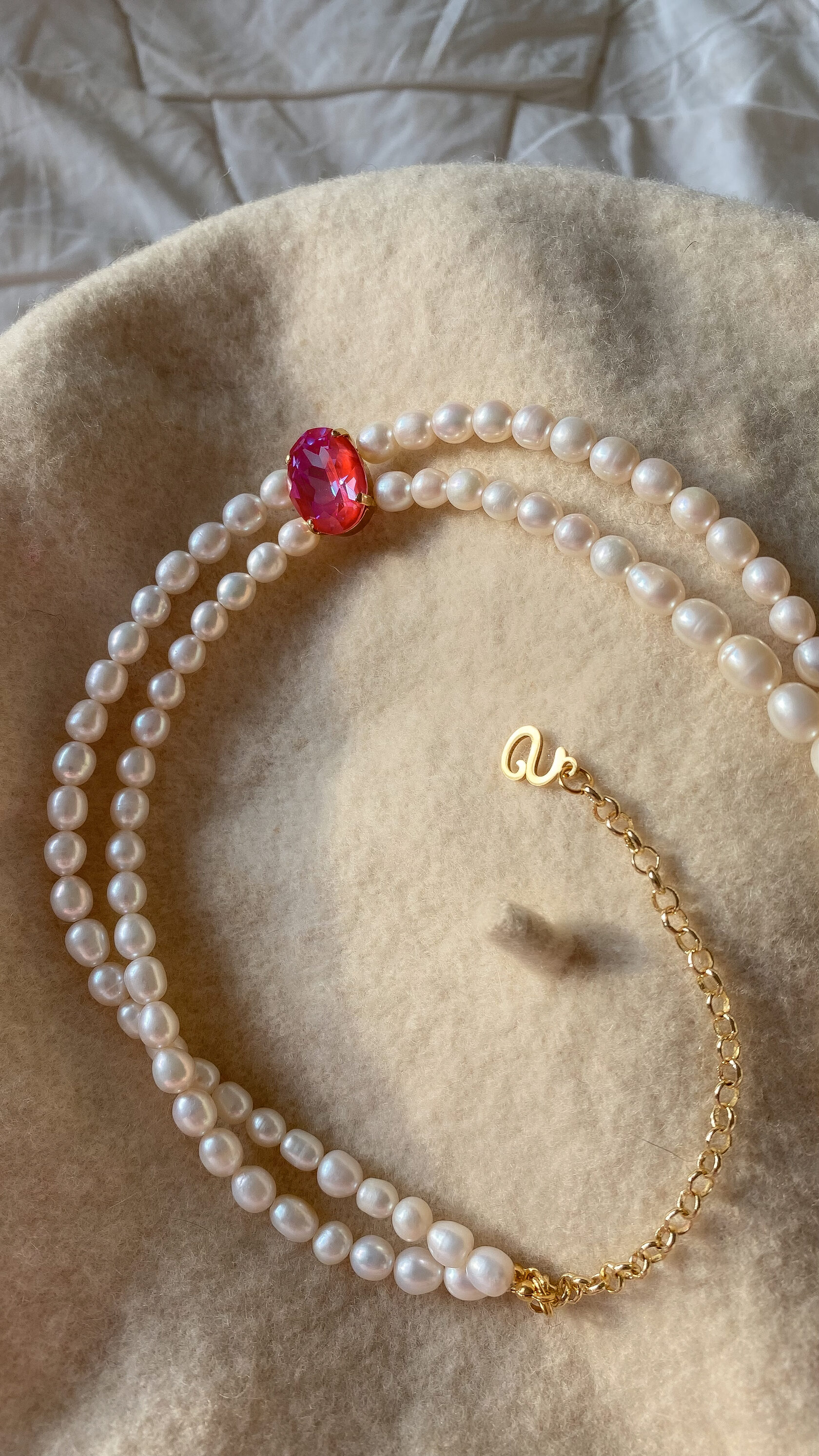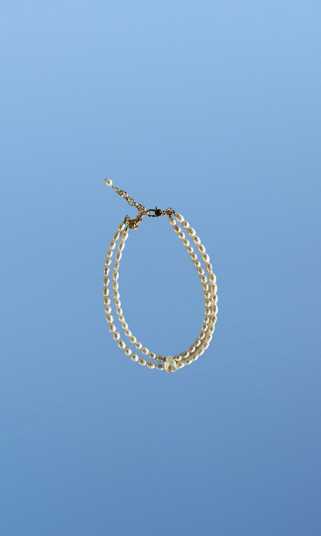 Двойная линия натурального жемчуга, кристалл Swarovski, латунь c позолотой