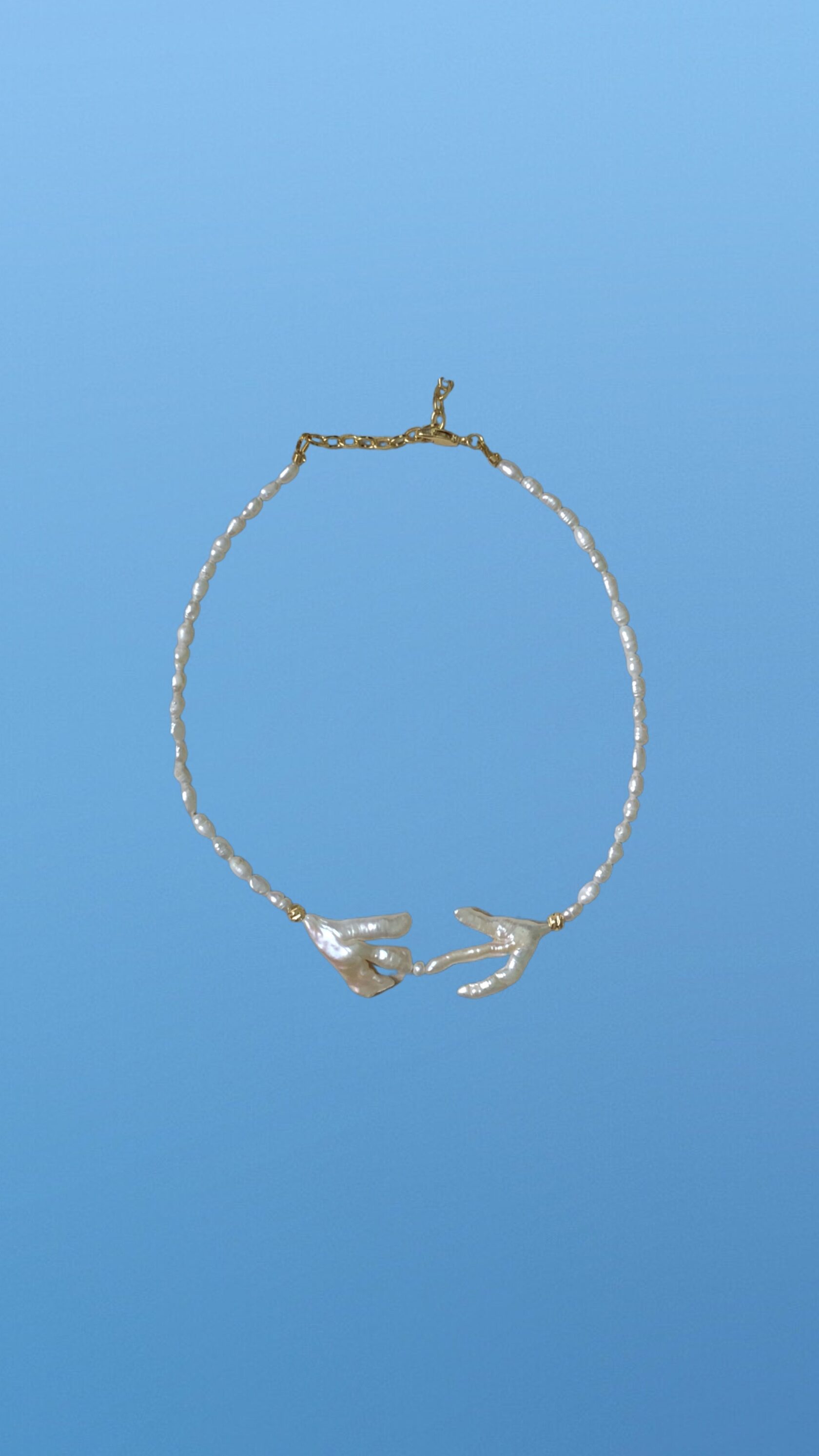 Состав: натуральный белый жемчуг, барочный жемчуг, гипоаллергенная латунь с позолотой