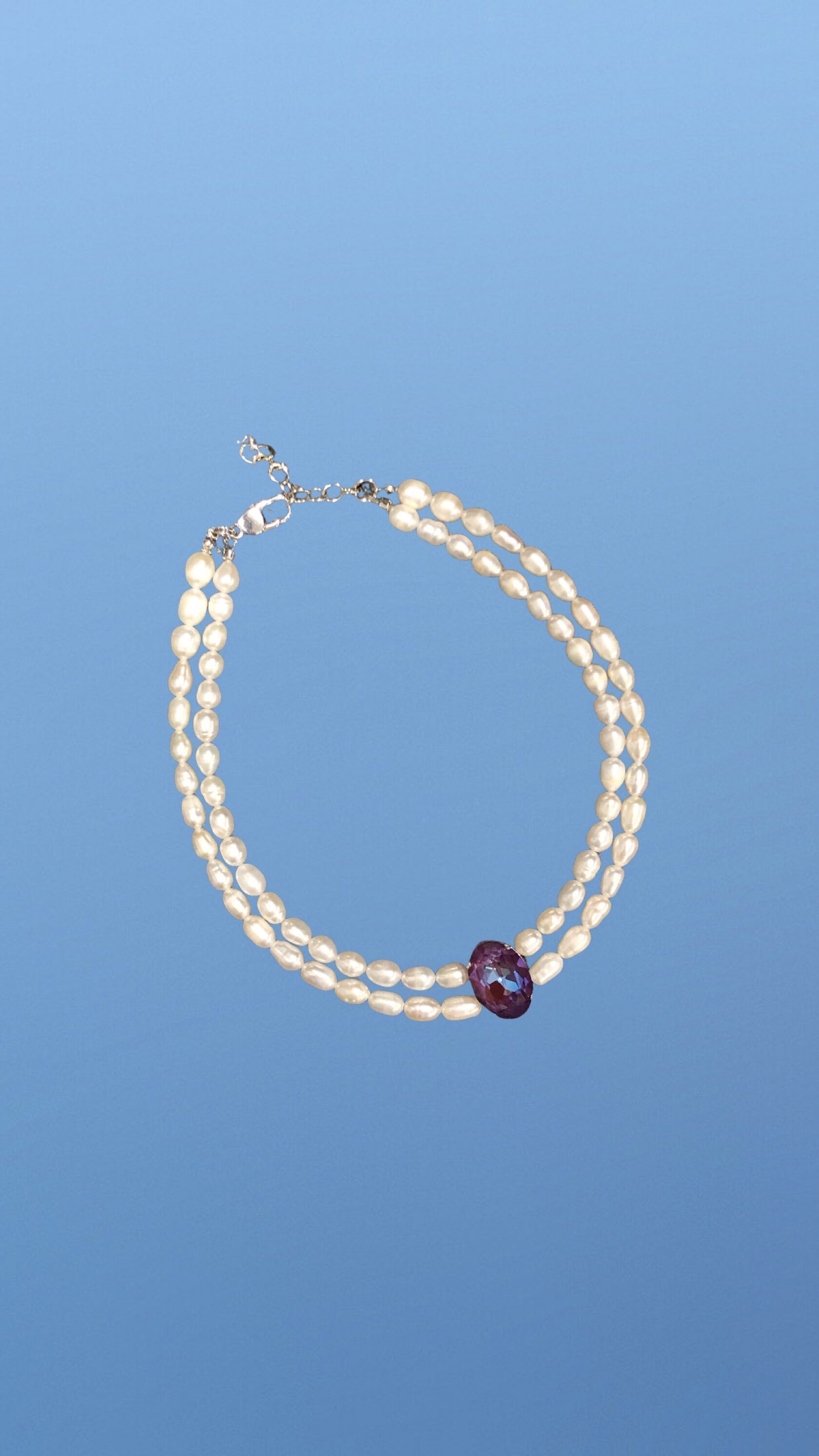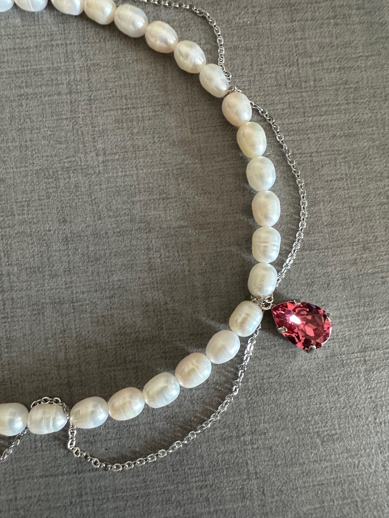Двойная линия натурального жемчуга, кристалл Swarovski