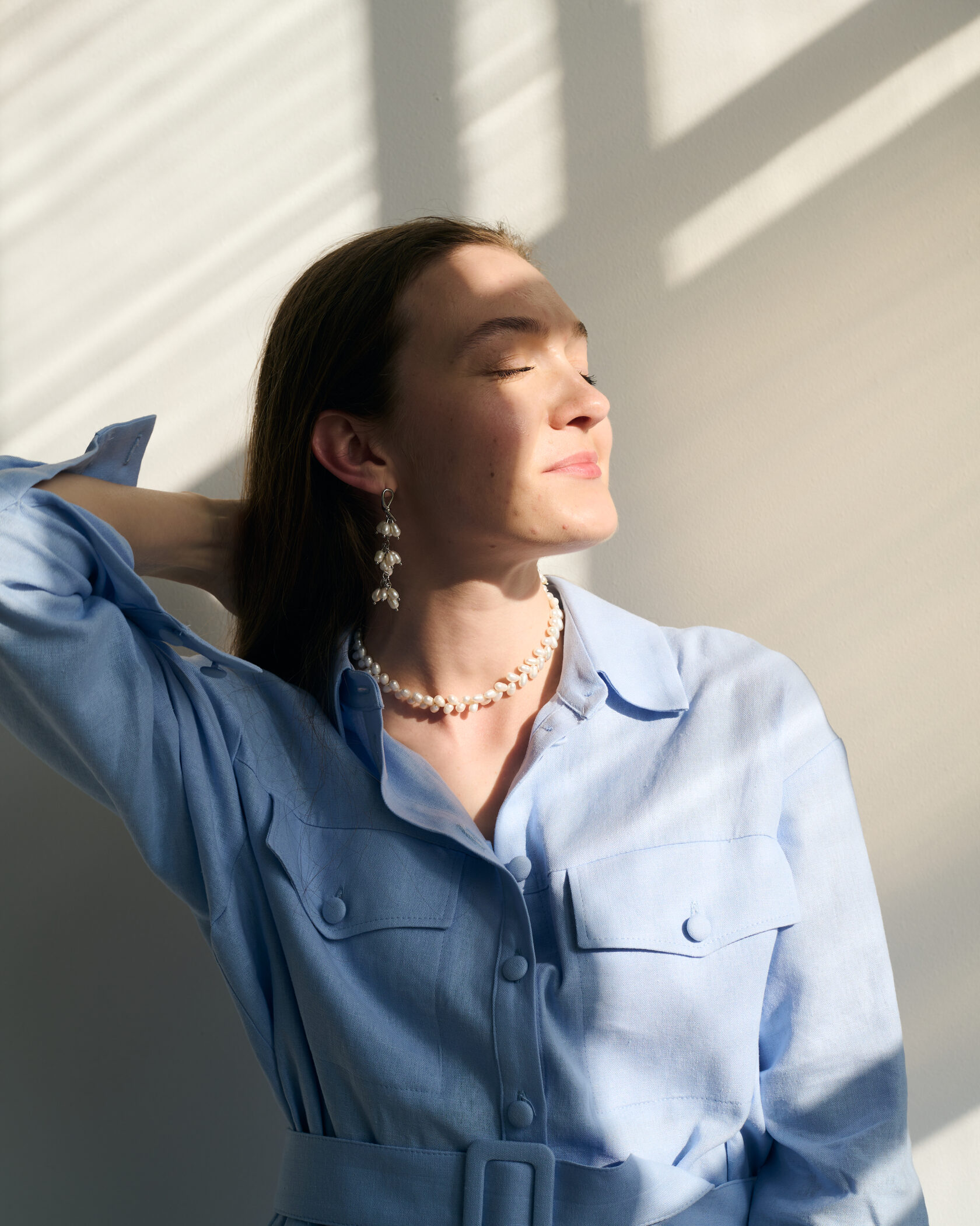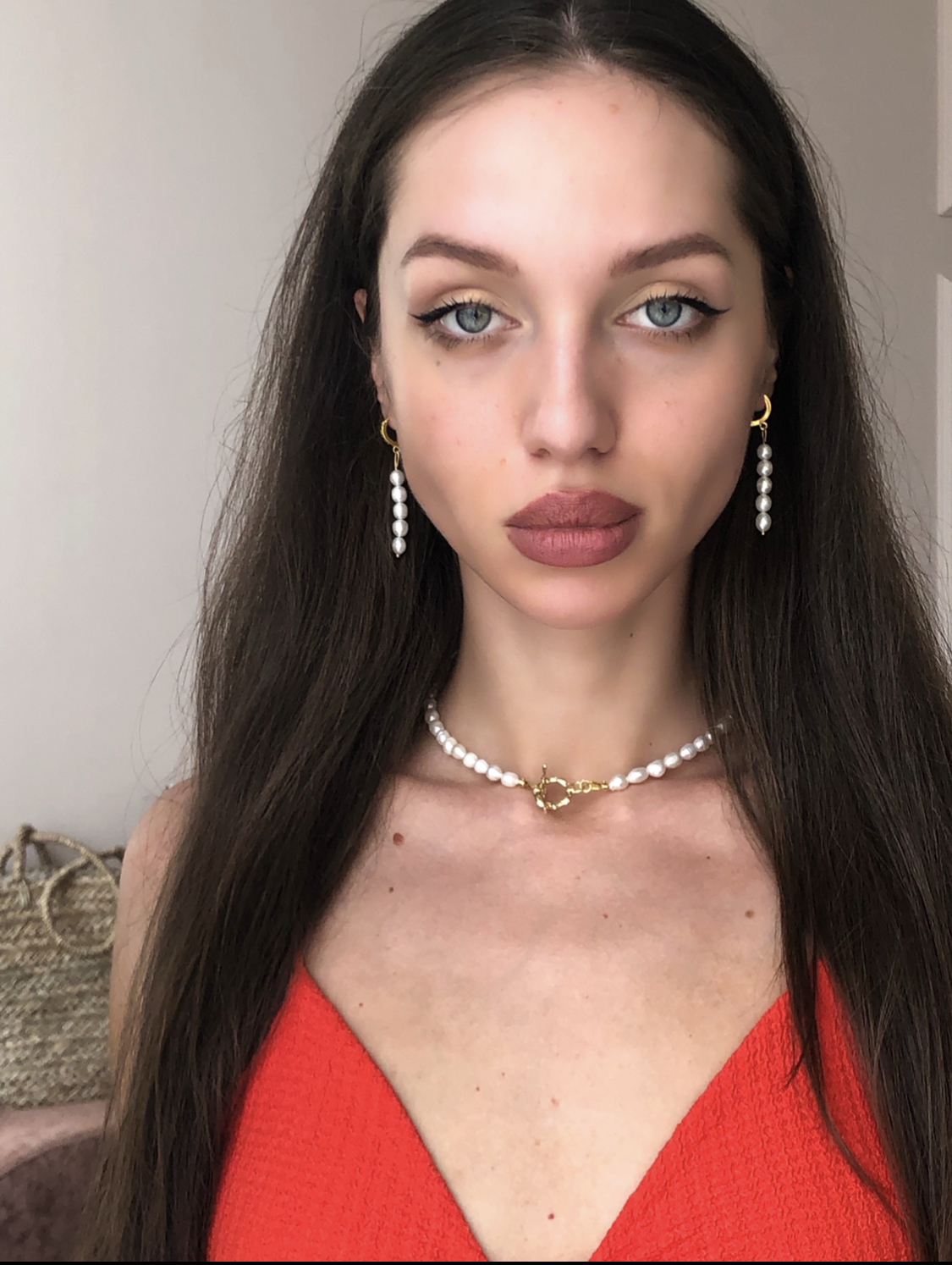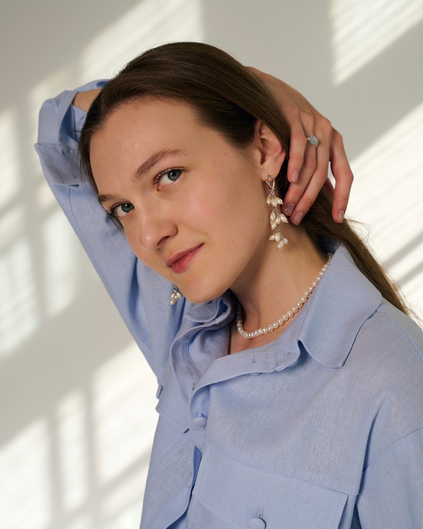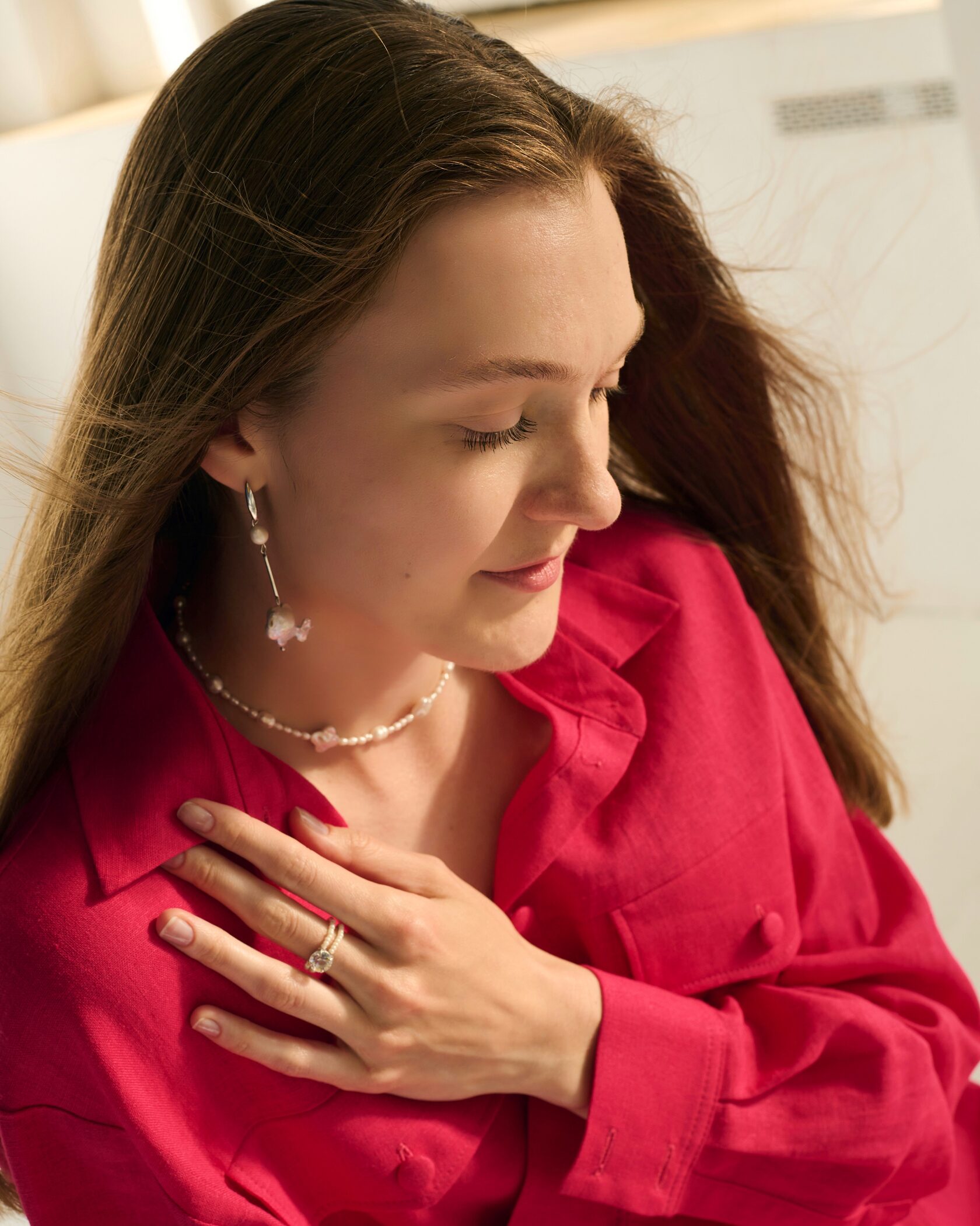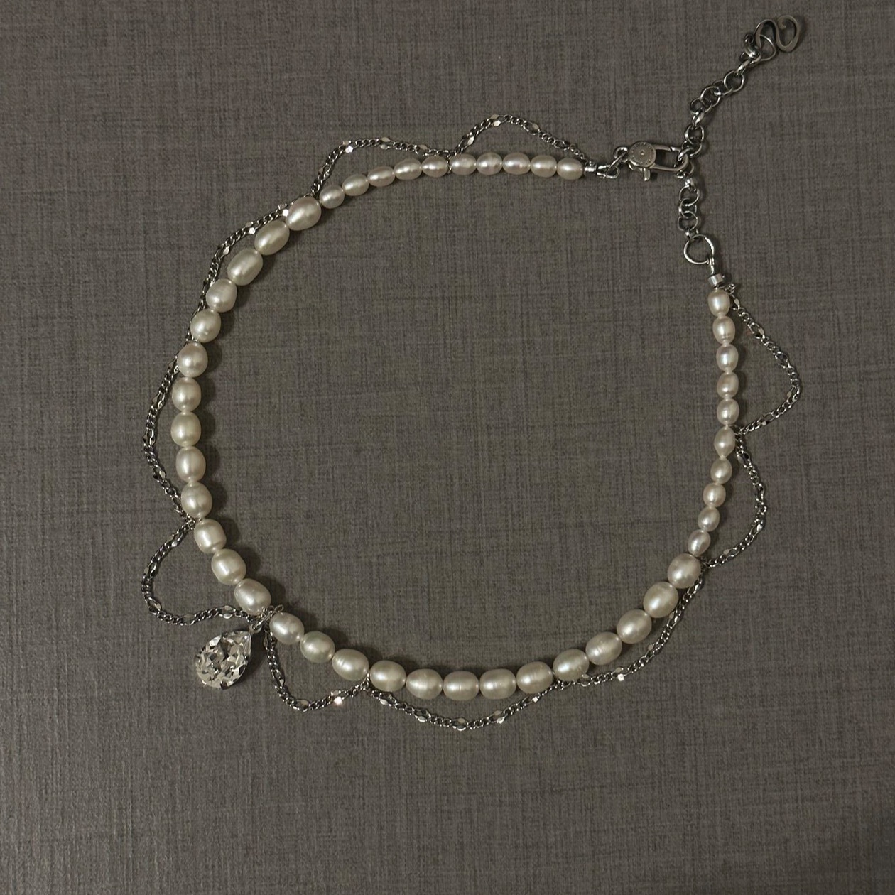 Двойная линия натурального жемчуга, кристалл Swarovski, гипоаллергенная латунь