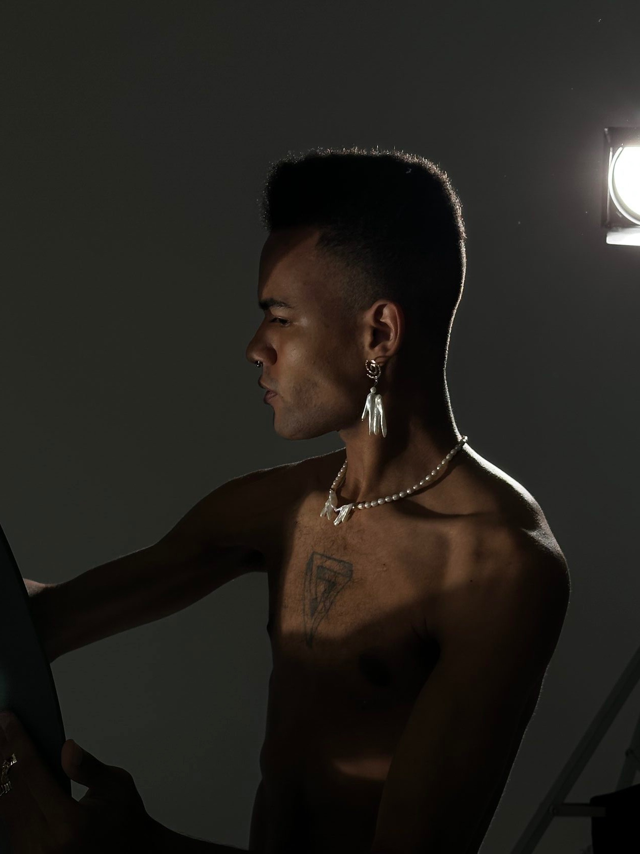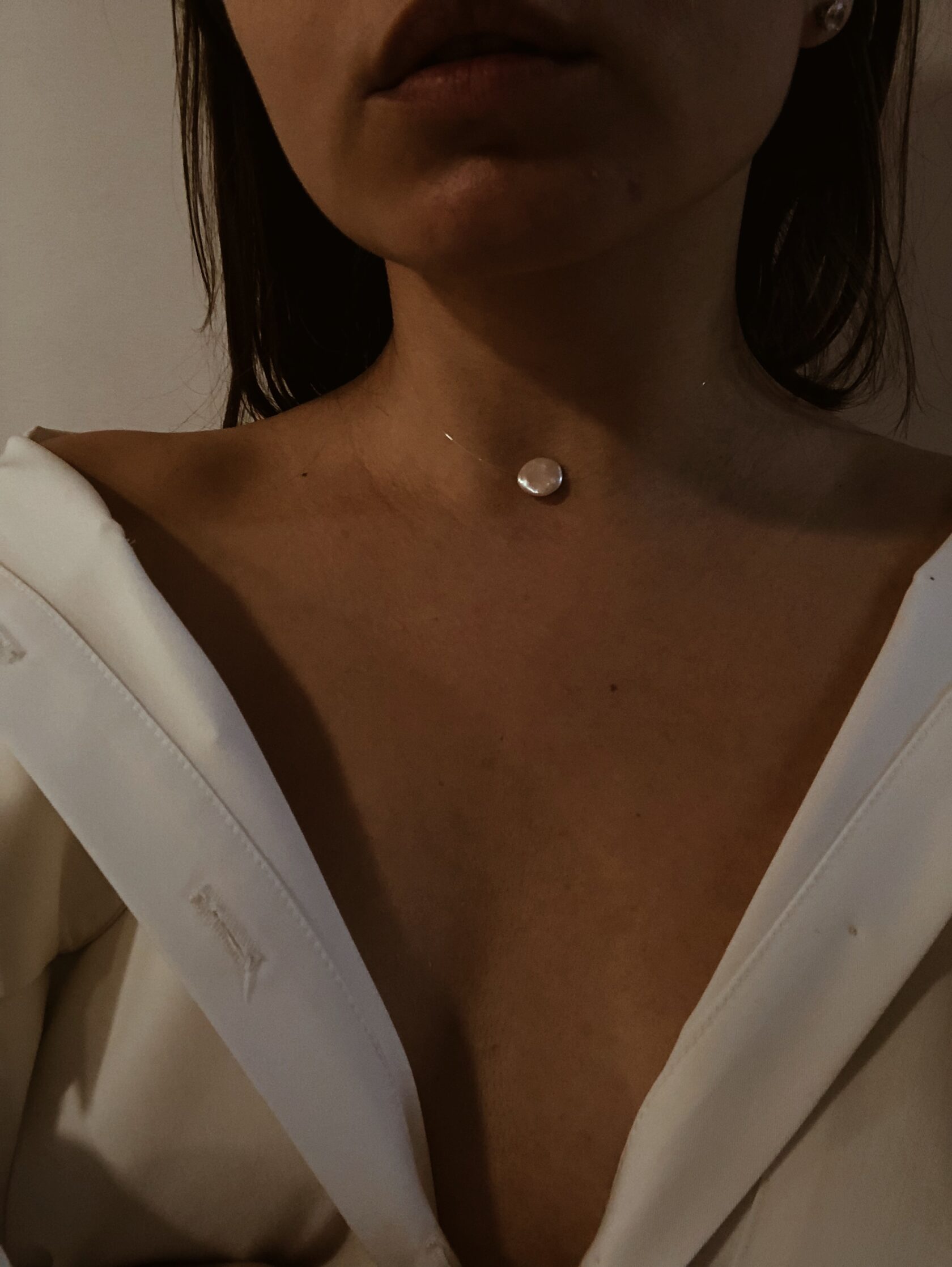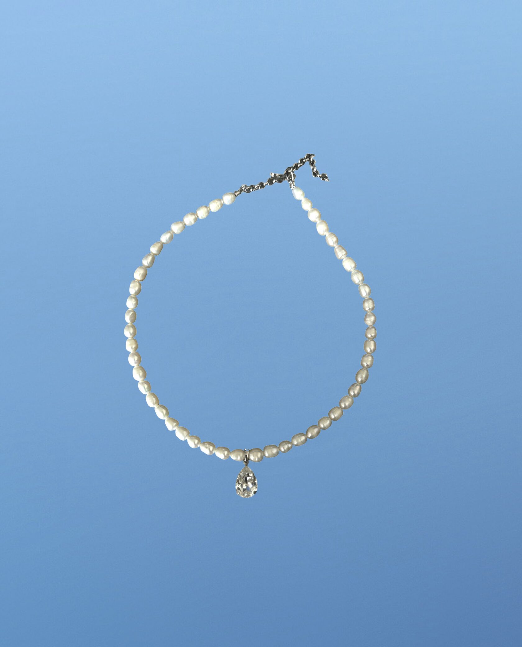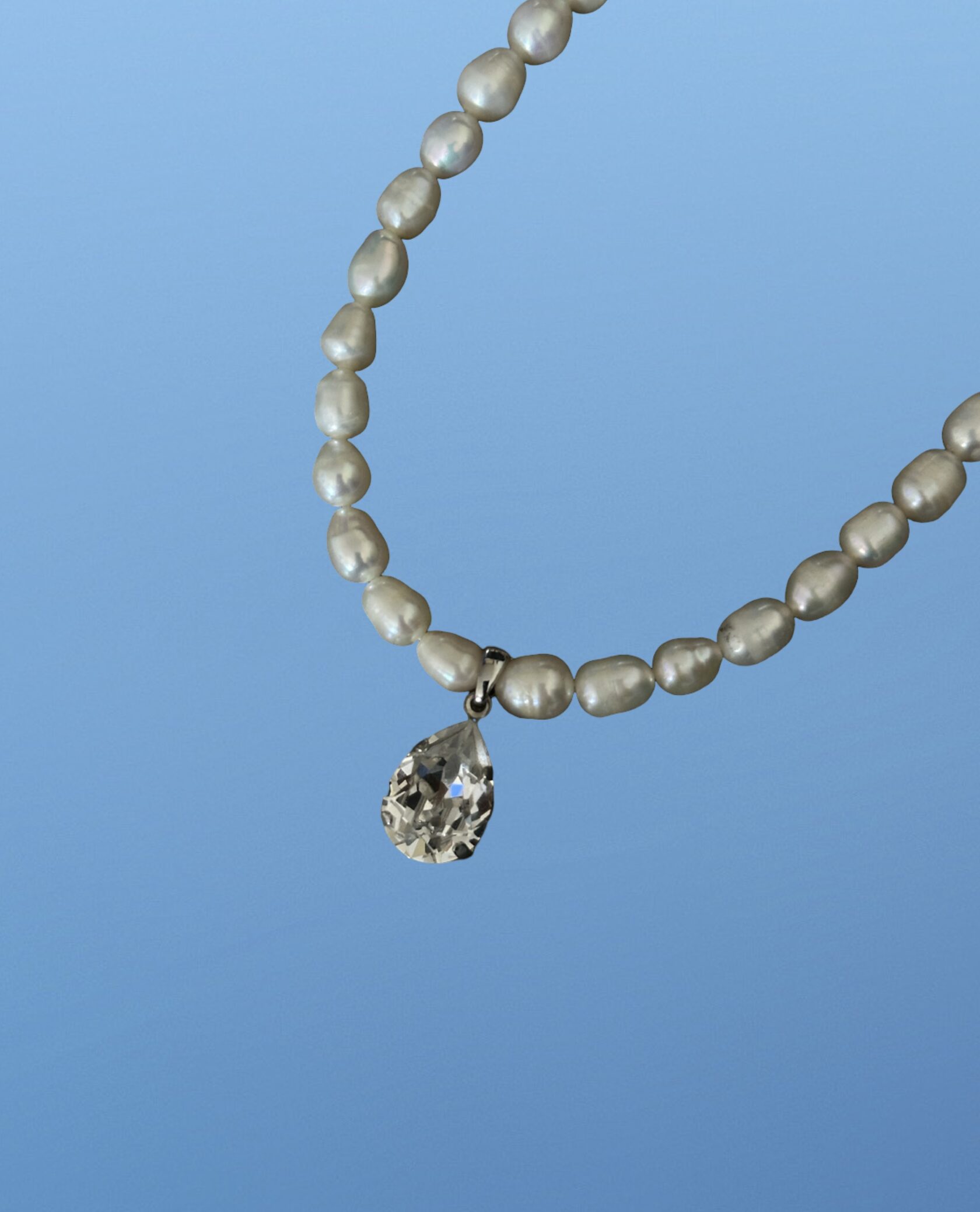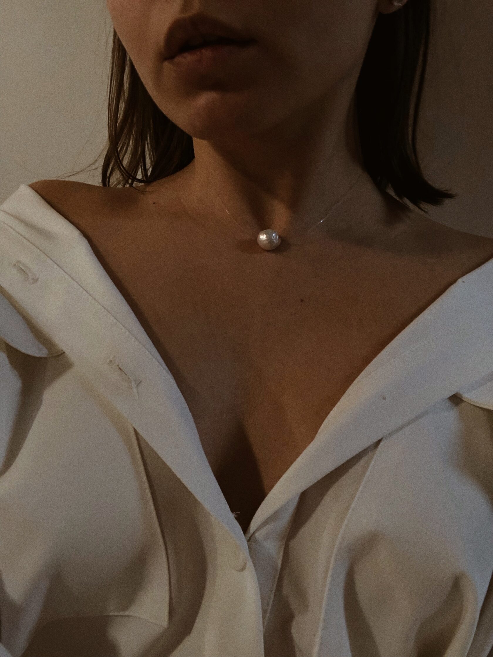 Барочная жемчужина, подвешенная на прозрачную плотную леску