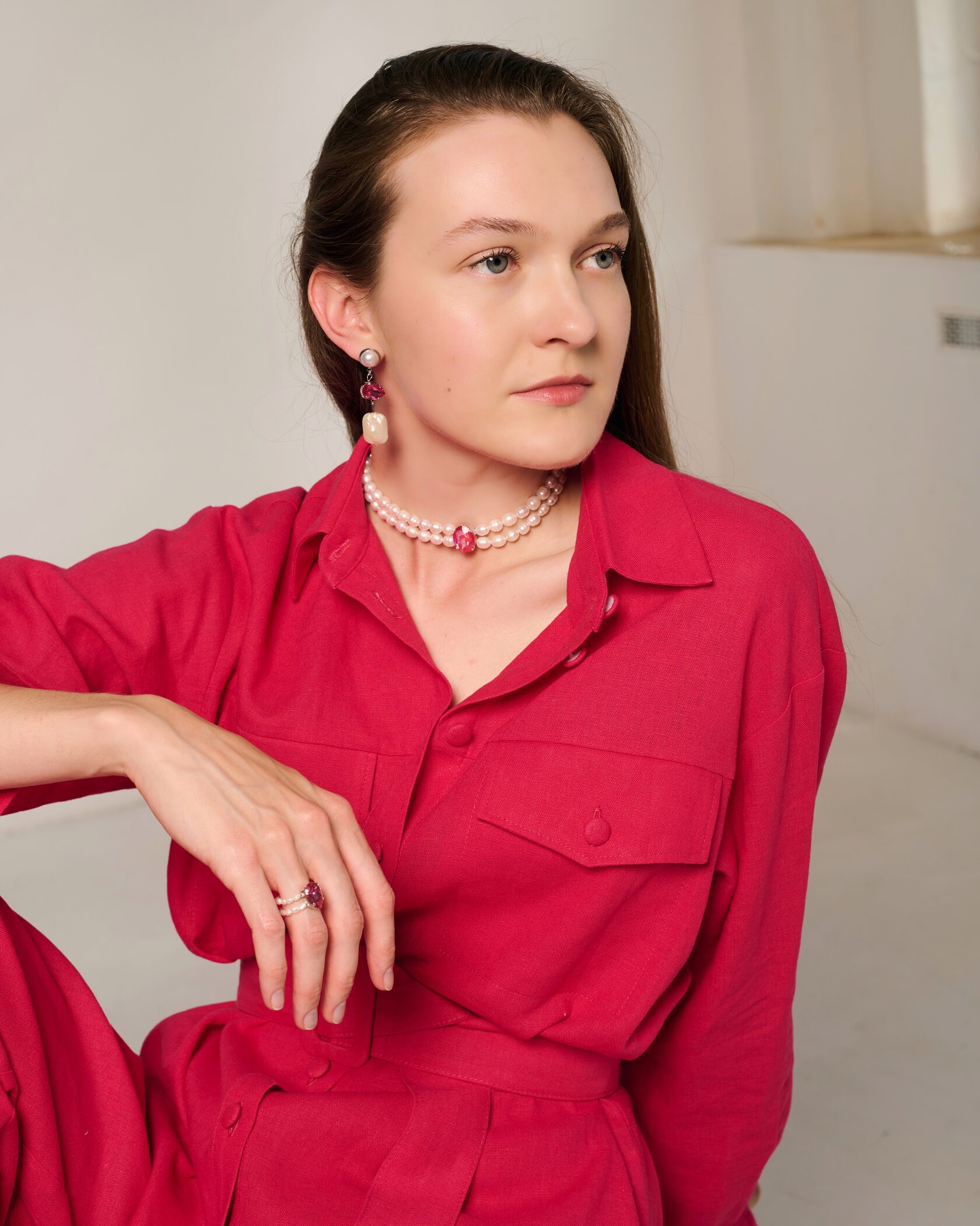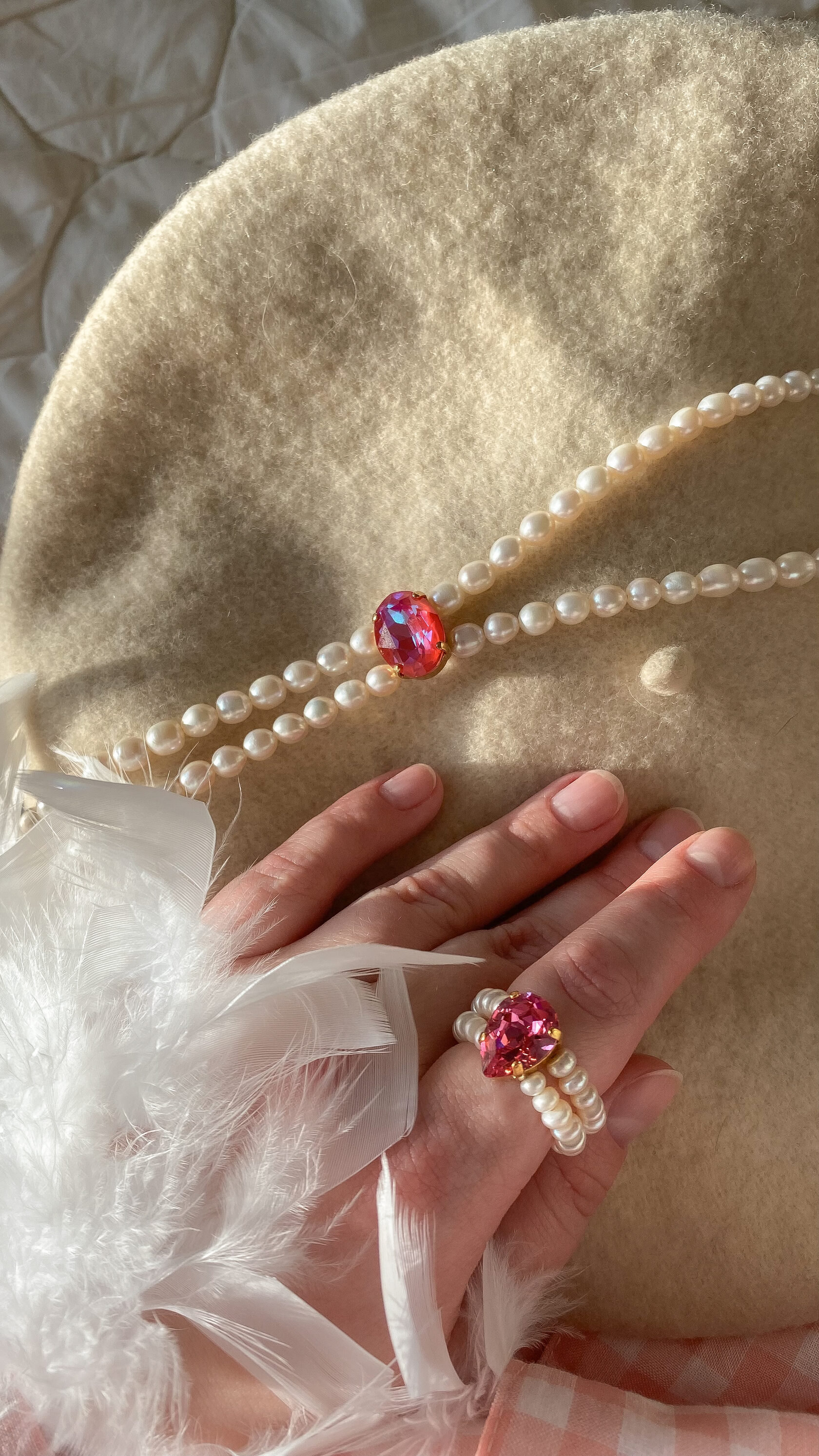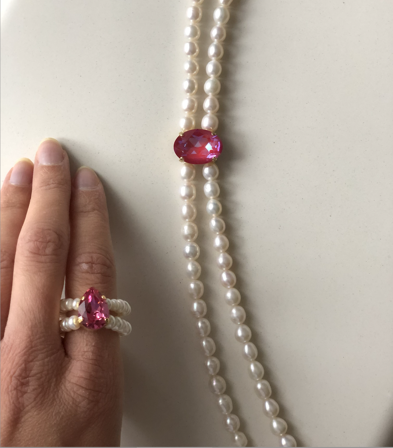 Натуральный жемчуг, розовый кварц