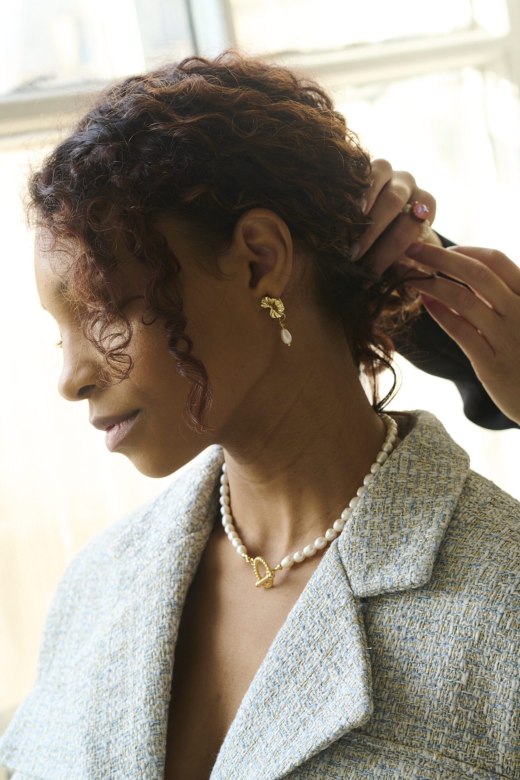 Натуральный микро-жемчуг, гипоаллергенная латунь с позолотой
